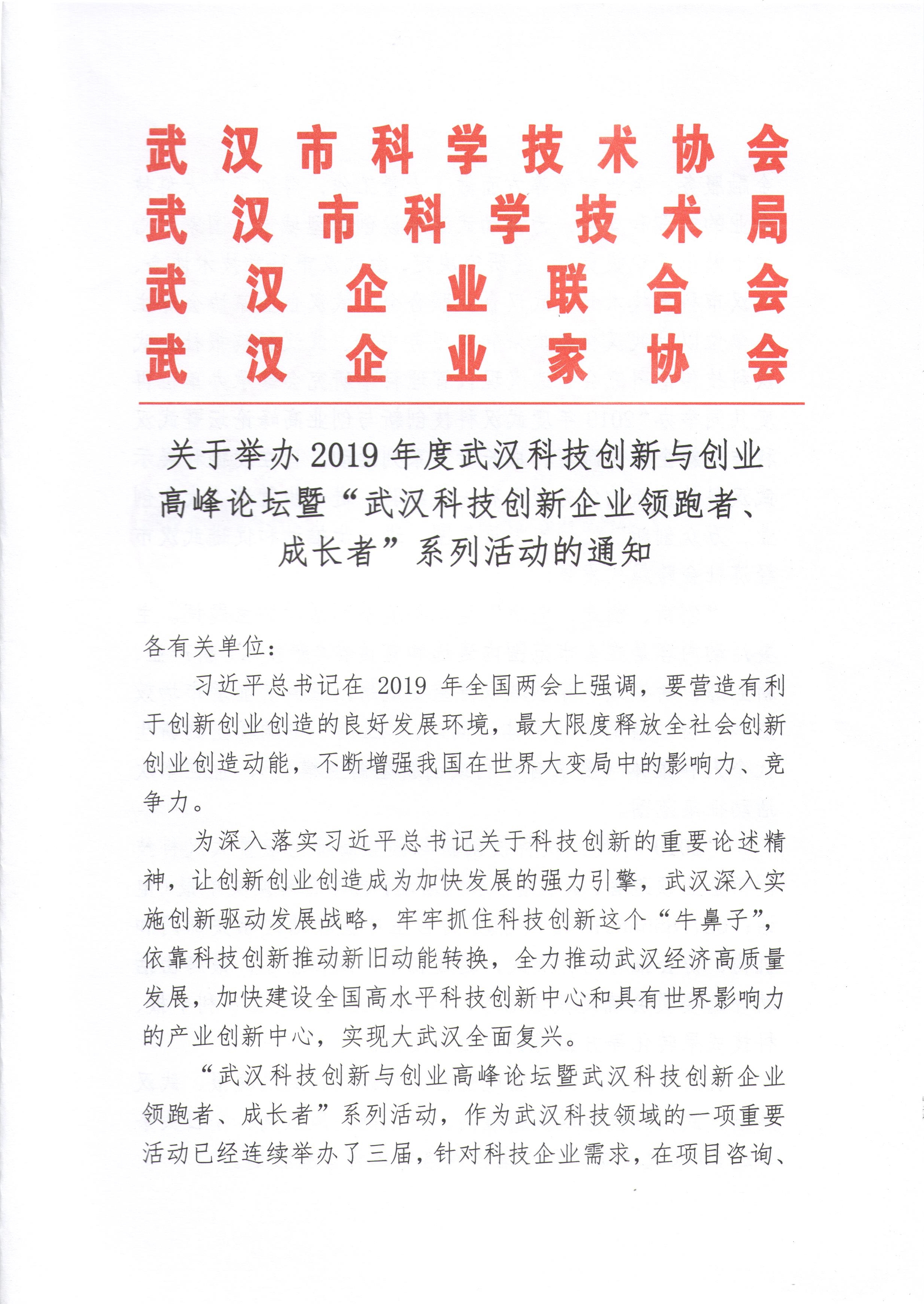 2019年度武漢科技創(chuàng)新企業(yè)領(lǐng)跑者示范企業(yè)系列活動通知.doc